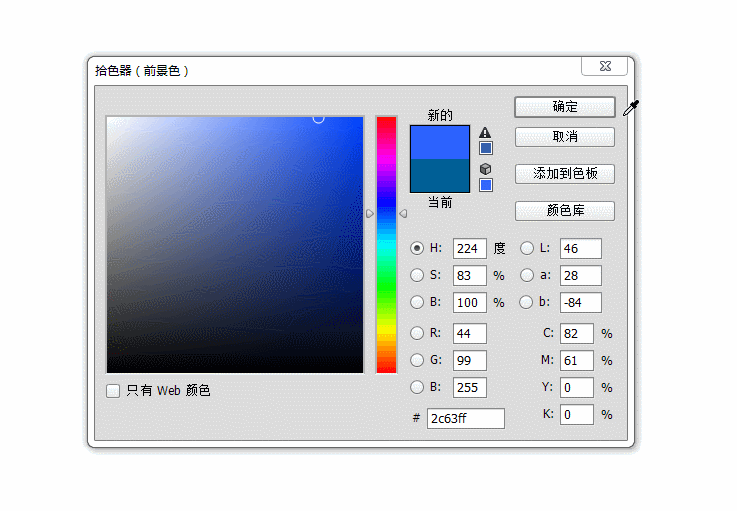 我們打開Photoshop,拾色器默認情況都是下面這樣的,我們也都習慣的在這個模式下去選擇顏色,